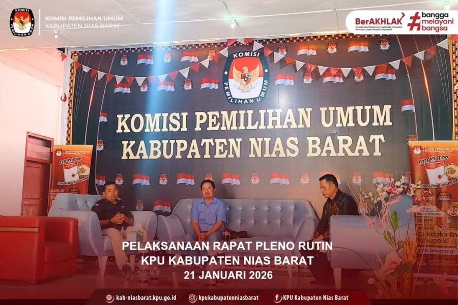 Komisi Pemilihan Umum Kabupaten Nias Barat mengikuti secara daring pelantikan dan pengambilan sumpah/janji Pejabat Fungsional Penata Kelola Pemilihan Umum di lingkungan Sekretariat Jenderal KPU, Sekretariat KPU Provinsi/KIP Aceh, serta Sekretariat KPU/KIP Kabupaten/Kota Tahun 2026.