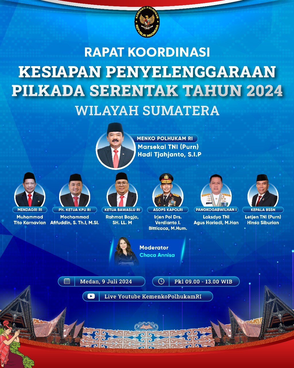 Rapat Koordinasi Kesiapan Penyelenggaraan Pilkada Serentak Tahun 2024 wilayah Sumatera Kamis, 01 Januari 1970 08:00 1030 Hai #TemanPemilih, Ayo ikuti bersama Rapat Koordinasi Kesiapan Penyelenggaraan Pilkada Serentak Tahun 2024 wilayah Sumatera. Selasa, 9 Juli 2024 Saksikan Live di Youtube KemenkoPolhukamRI #KPUMelayani #PilkadaSerentak2024 Baca Selengkapnya