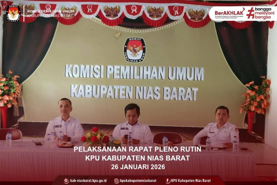 Komisi Pemilihan Umum (KPU) Kabupaten Nias Barat melaksanakan rapat pleno rutin pada hari Senin, 26 Januari 2026 di Aula Kantor KPU Kabupaten Nias Barat.