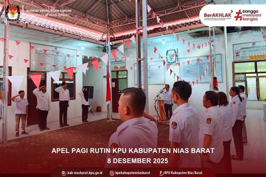 KPU Kabupaten Nias Barat Melaksanakan Rapat Koordinasi Penyesuaian Lampiran Keputusan Komisi Pemilihan Umum Nomor 360 Tahun 2024 tentang Penetapan Hasil Pemilihan Umum Presiden dan Wakil Presiden, Anggota DPR, DPD, DPRD Provinsi, dan DPRD Kabupaten/Kota, bertempat di aula Kantor KPU Kabupaten Nias Barat. Selasa, 2 Desember 2025. Rakor dibuka secara resmi oleh Ketua KPU Kabupaten Nias Barat Safarman Jaya Gulo. Rakor tersebut bertujuan untuk mensosialisasikan serta mencermati secara detail hasil penetapan Pemilu 2024 yang telah ditetapkan secara nasional oleh KPU RI. Kegiatan ini merupakan bagian dari upaya meningkatkan transparansi dan akuntabilitas penyelenggaraan Pemilu di tingkat daerah. Hadir sebagai narasumber utama Anggota KPU Kabupaten Nias Barat Yulianus Gulo selaku kepala divisi Teknis Penyelenggara Pemilu, yang memaparkan poin-poin penting dari Keputusan KPU RI Nomor 360 Tahun 2024, khususnya terkait hasil perolehan suara di wilayah Kabupaten Nias Barat. Sesi pemaparan kemudian dilanjutkan dengan diskusi dan tanggapan dari para peserta Rakor. Acara ini juga dihadiri oleh Pimpinan Partai Politik tingkat Kabupaten Nias Barat serta Bawaslu Kabupaten Nias Barat. #KPUMelayani